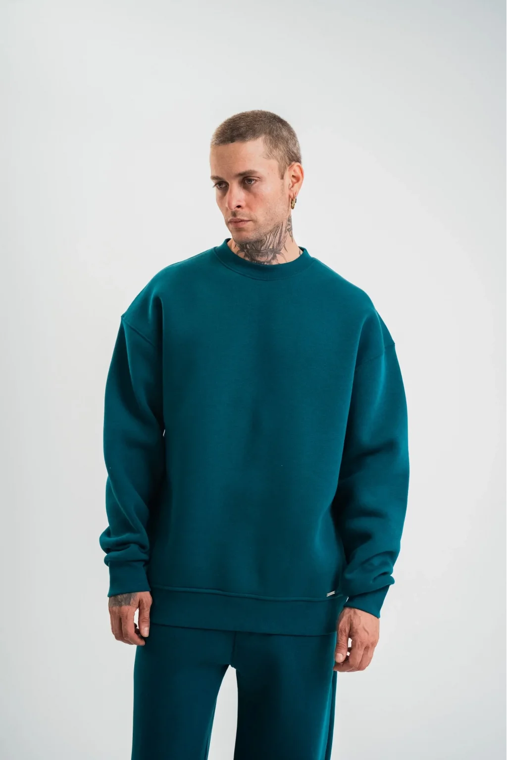 Uzun Kol Bisiklet Yaka Basic SweatShirt - Koyu Deniz Yeşili