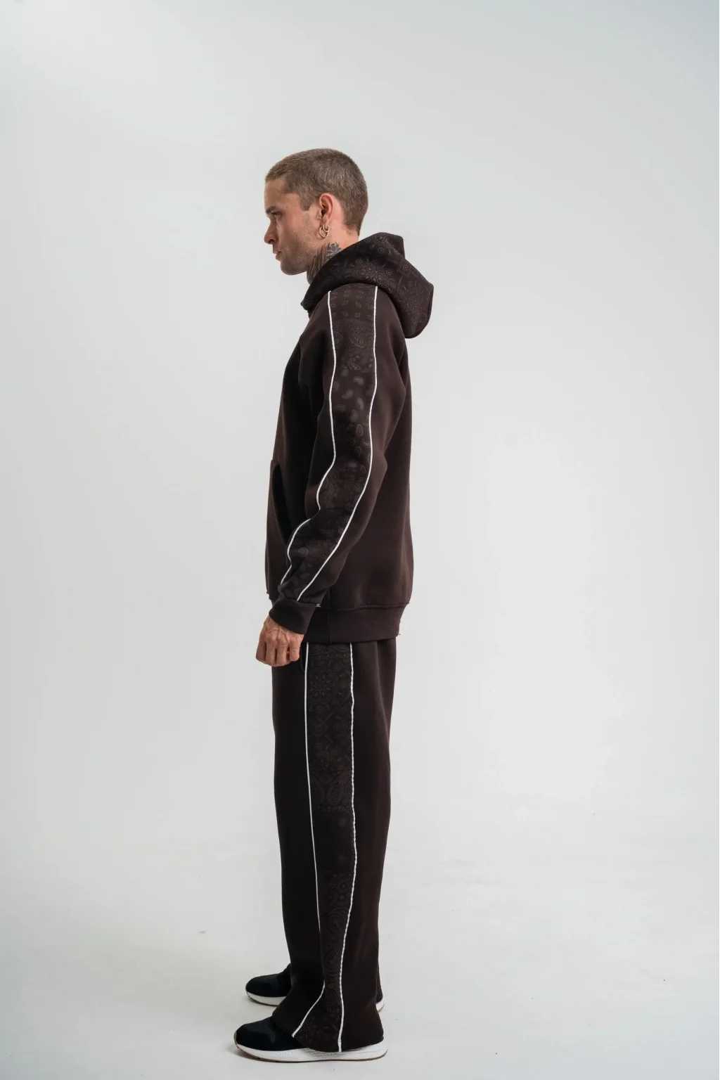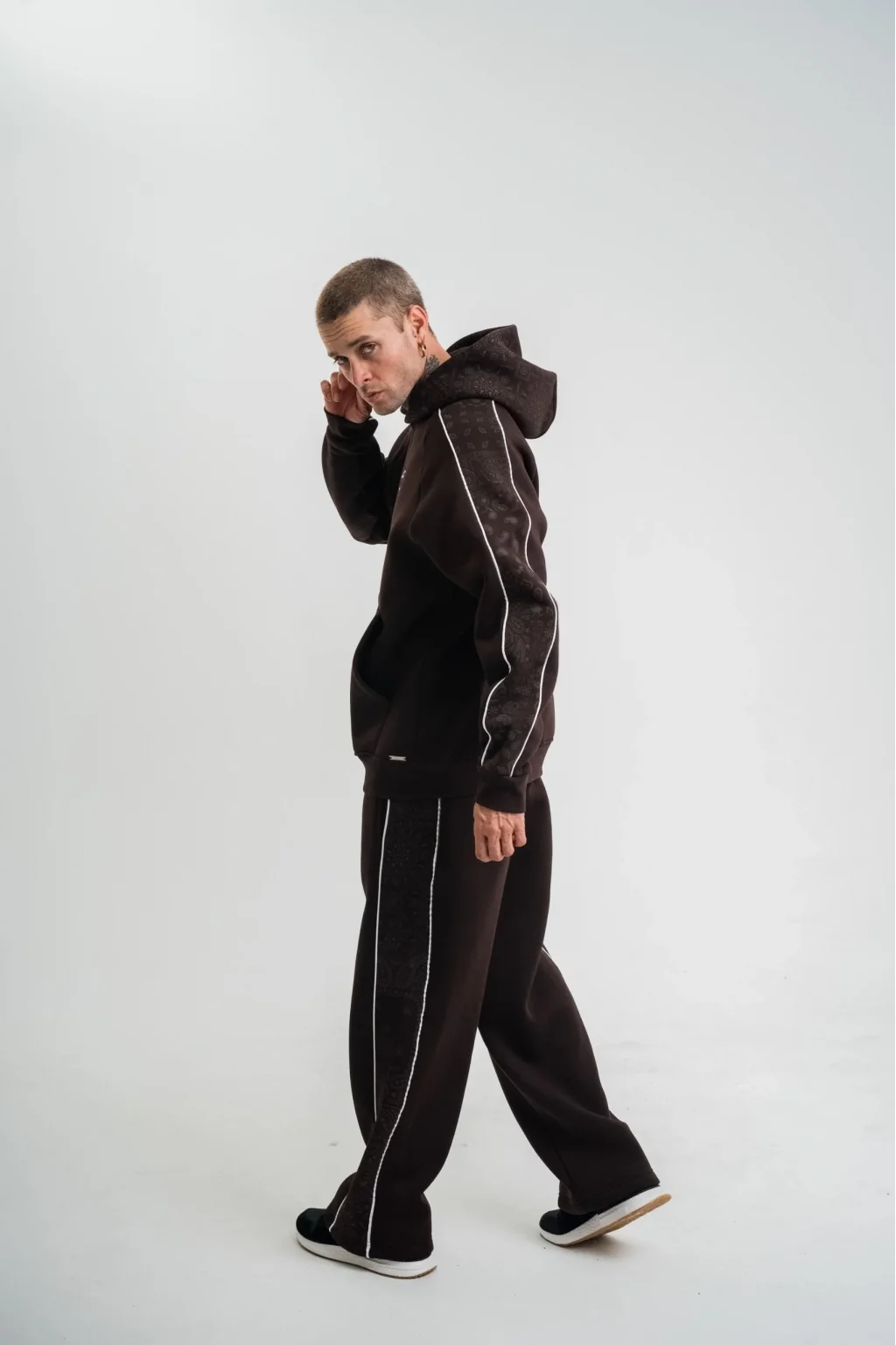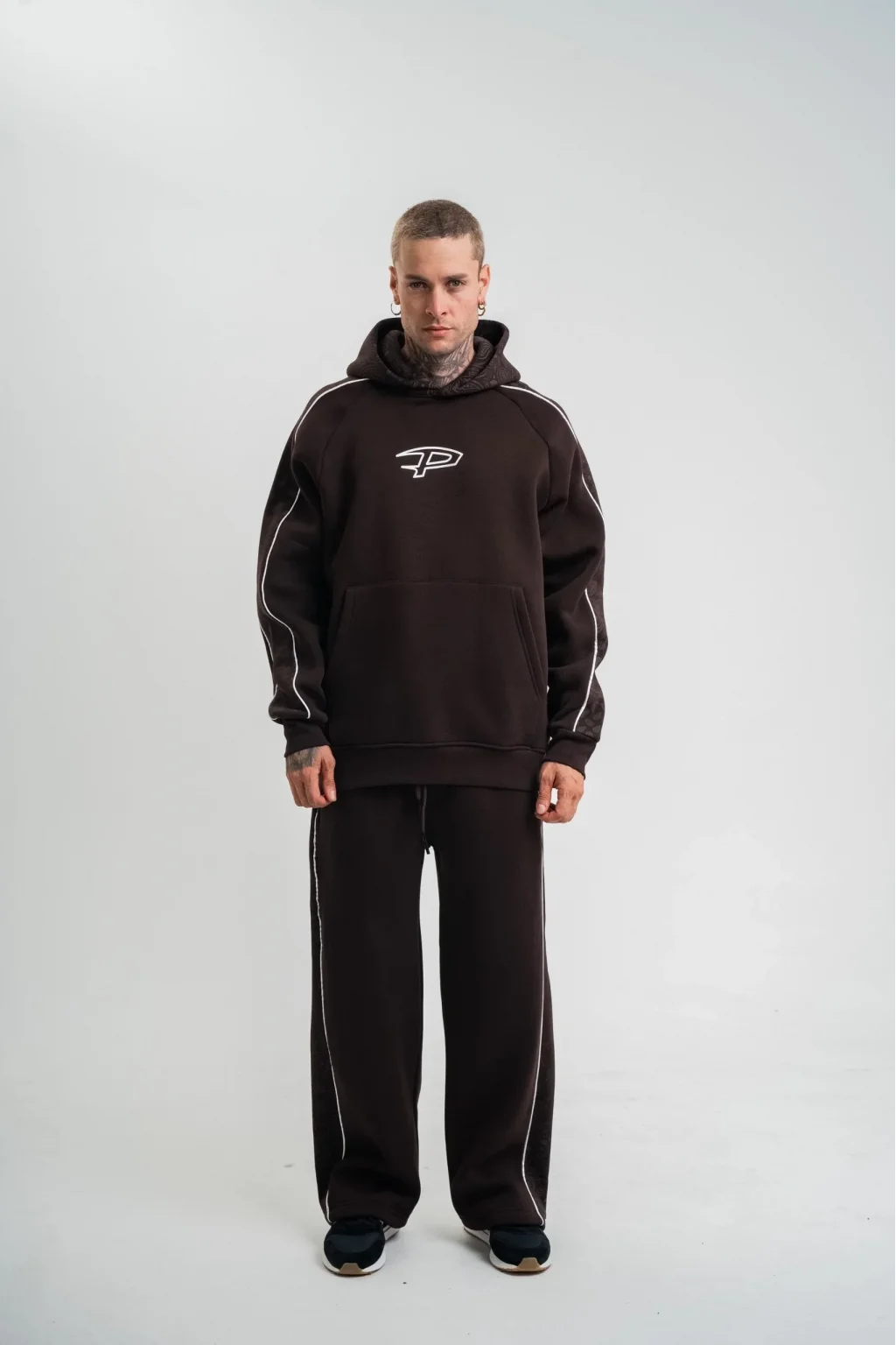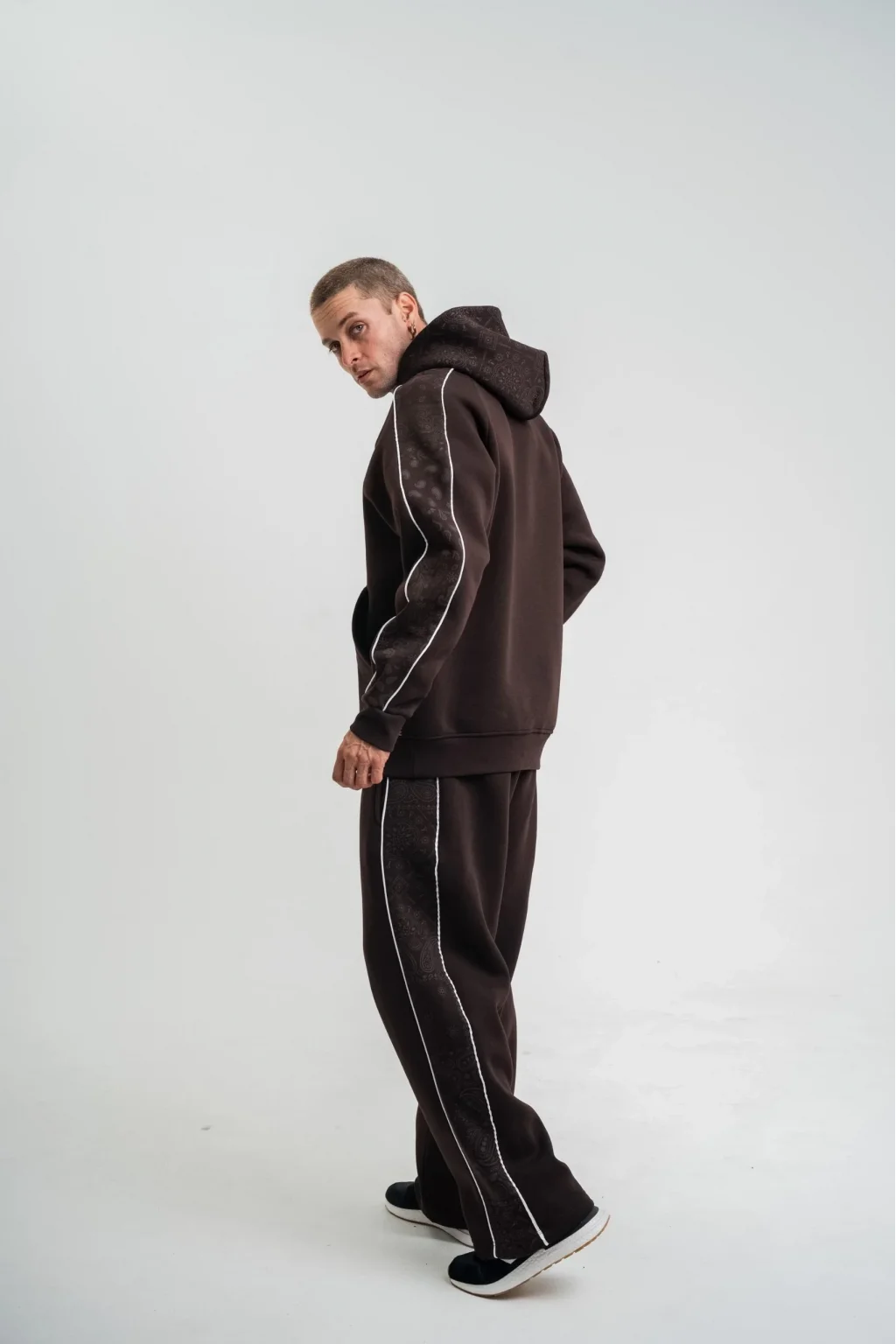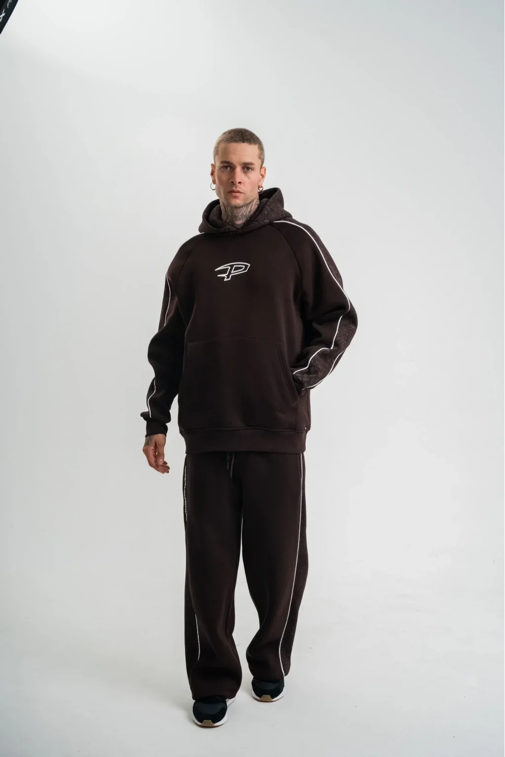 Uzun Kol Kapşonlu Ara Biyeli Baggy Eşofman Takım - Kahve
