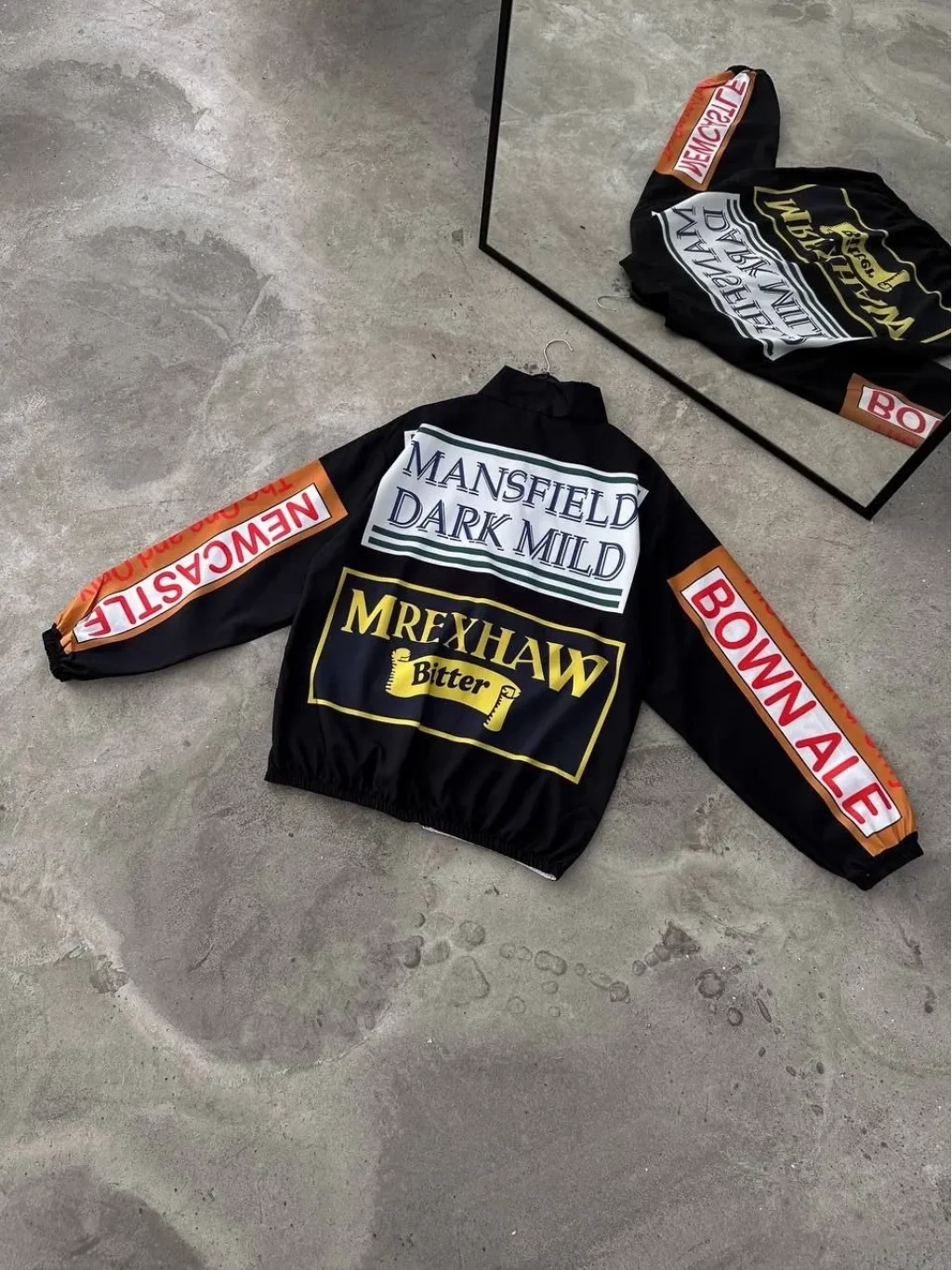 Vintage Baskılı Paraşüt Rüzgarlık - Siyah