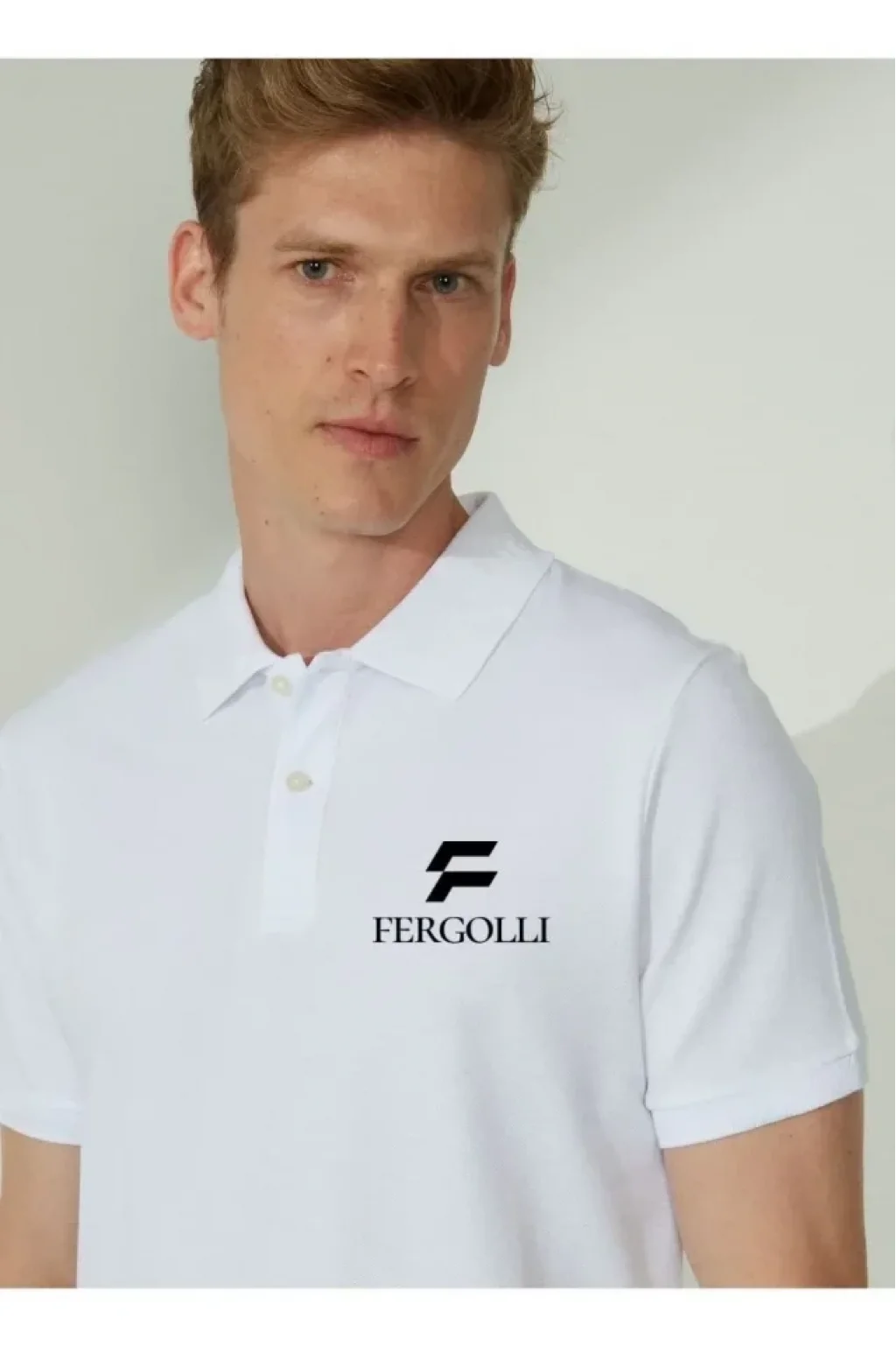 Yakası Düğmeli Yakalı Pike Baskılı T-Shirt - Beyaz