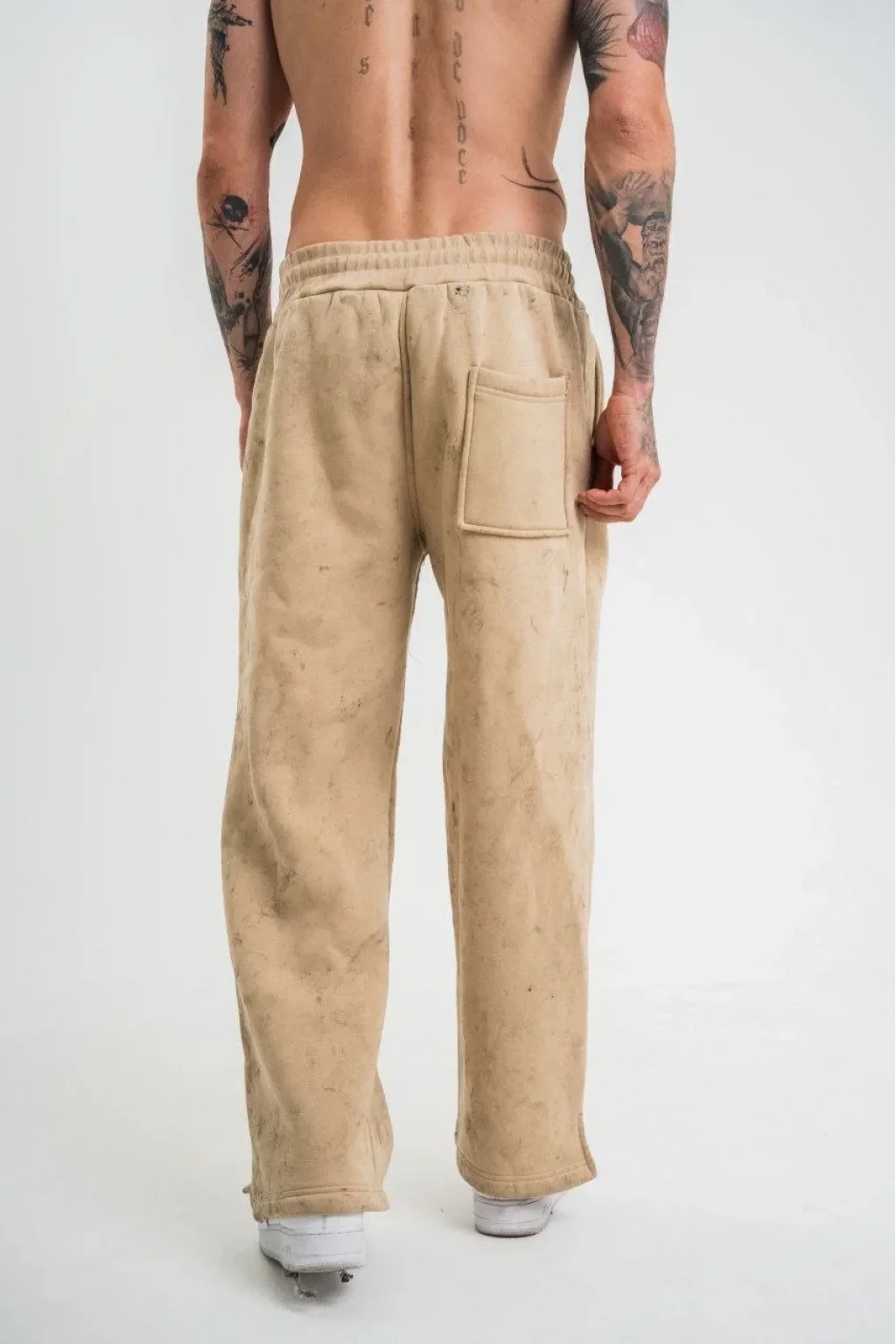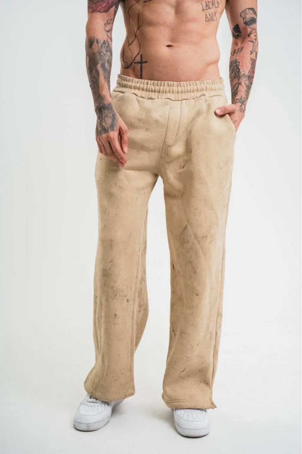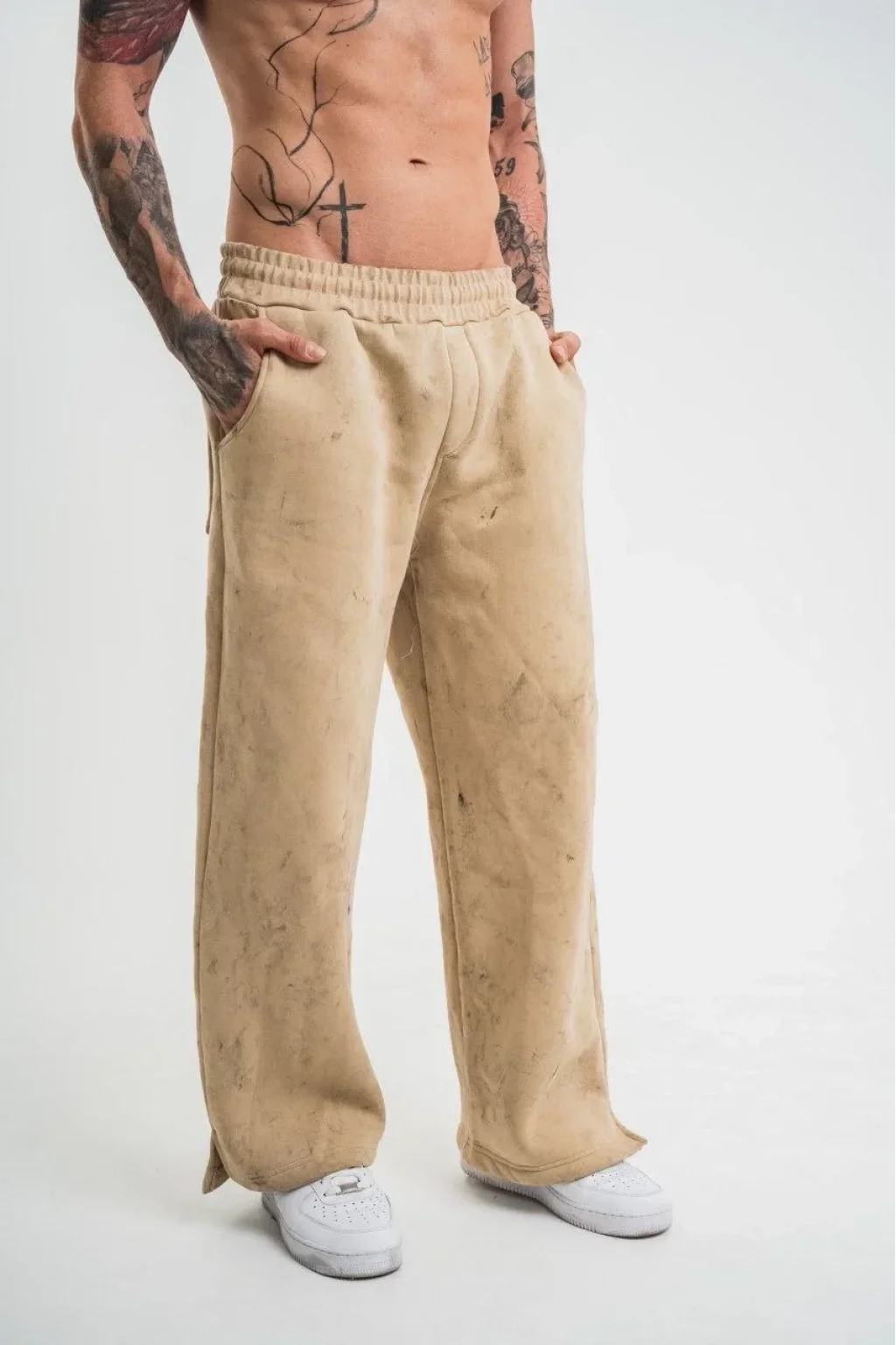 Yırtmaç Detaylı Boru Paça Baggy Eşofman Pantolon - Bej
