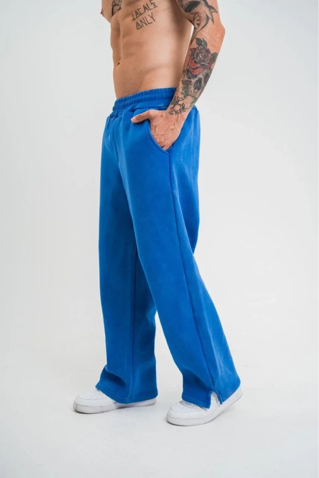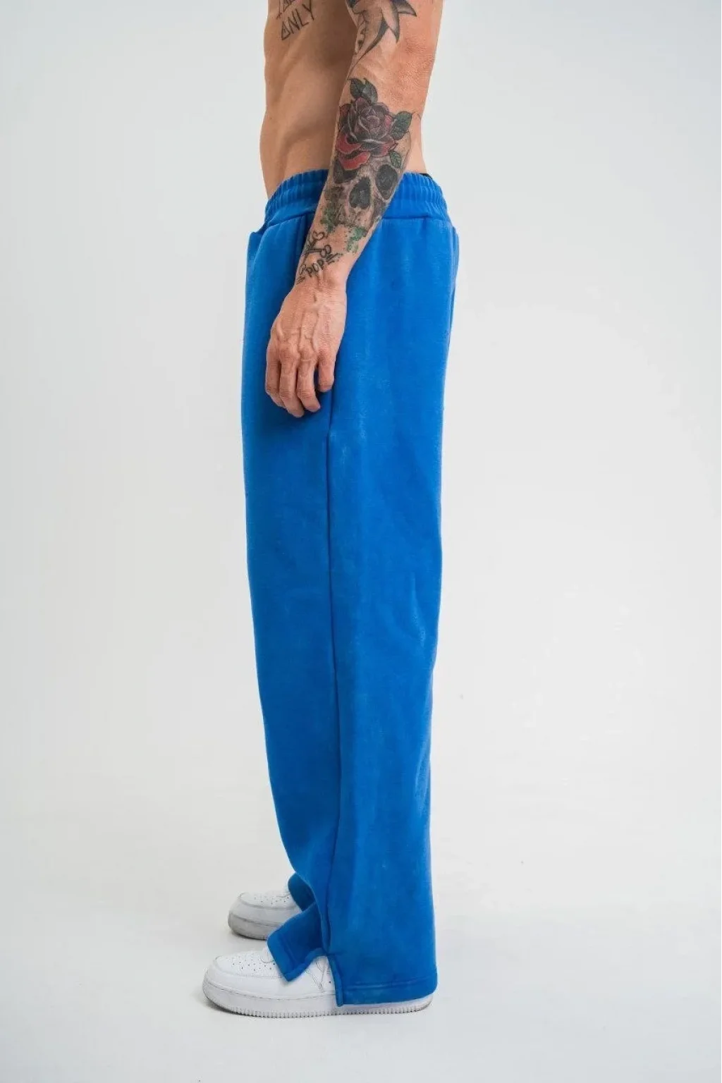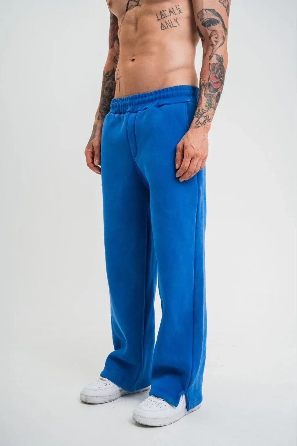 Yırtmaç Detaylı Boru Paça Baggy Eşofman Pantolon -Mavi