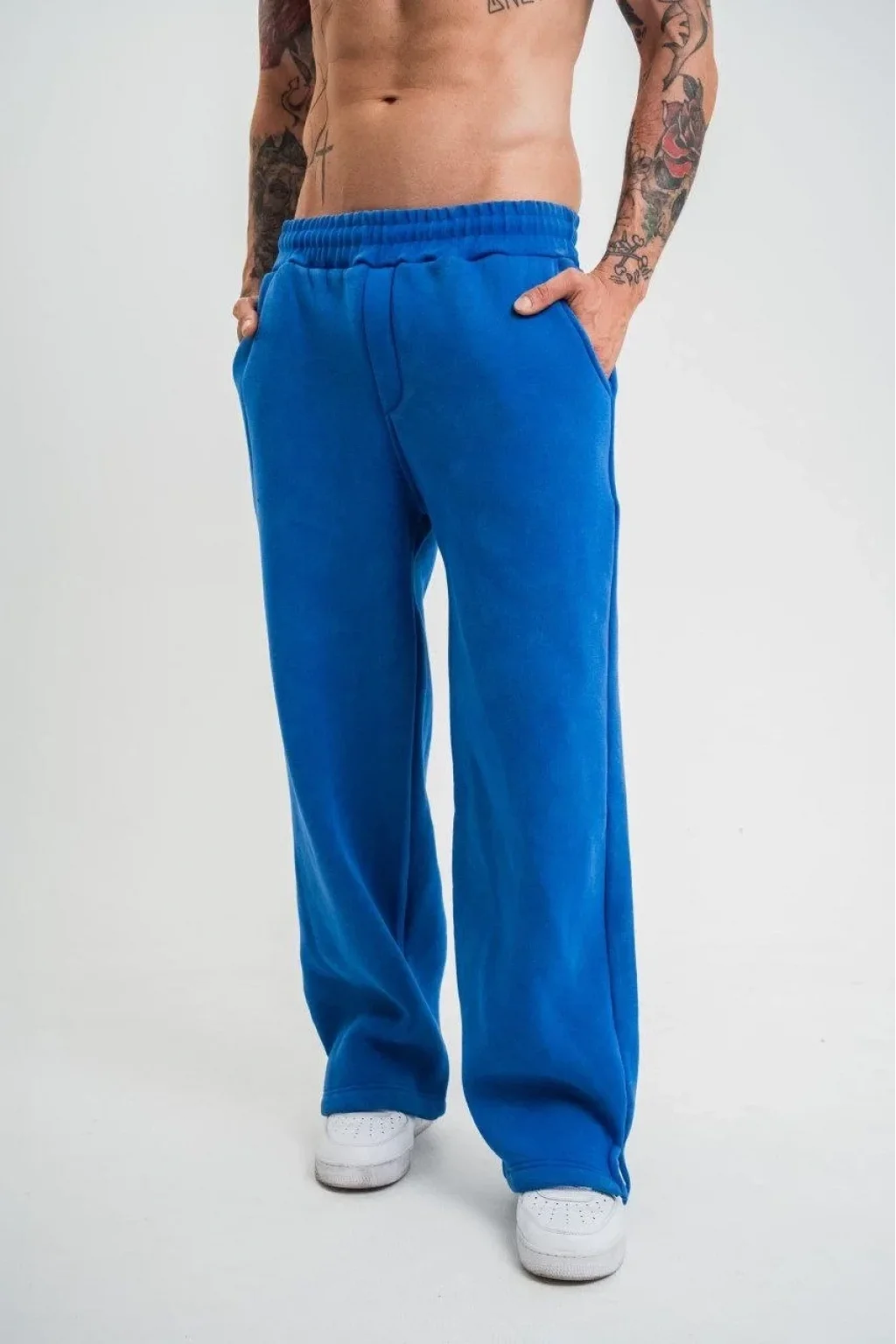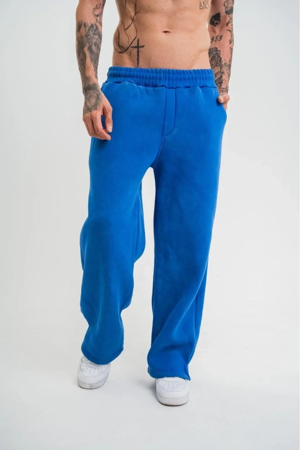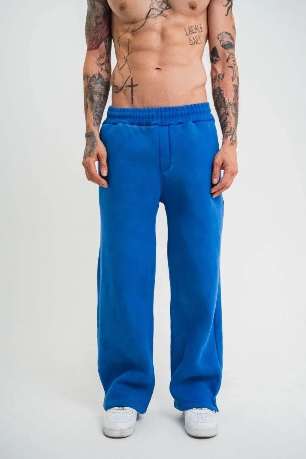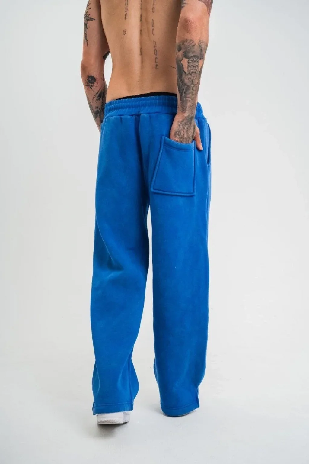 Yırtmaç Detaylı Boru Paça Baggy Eşofman Pantolon -Mavi