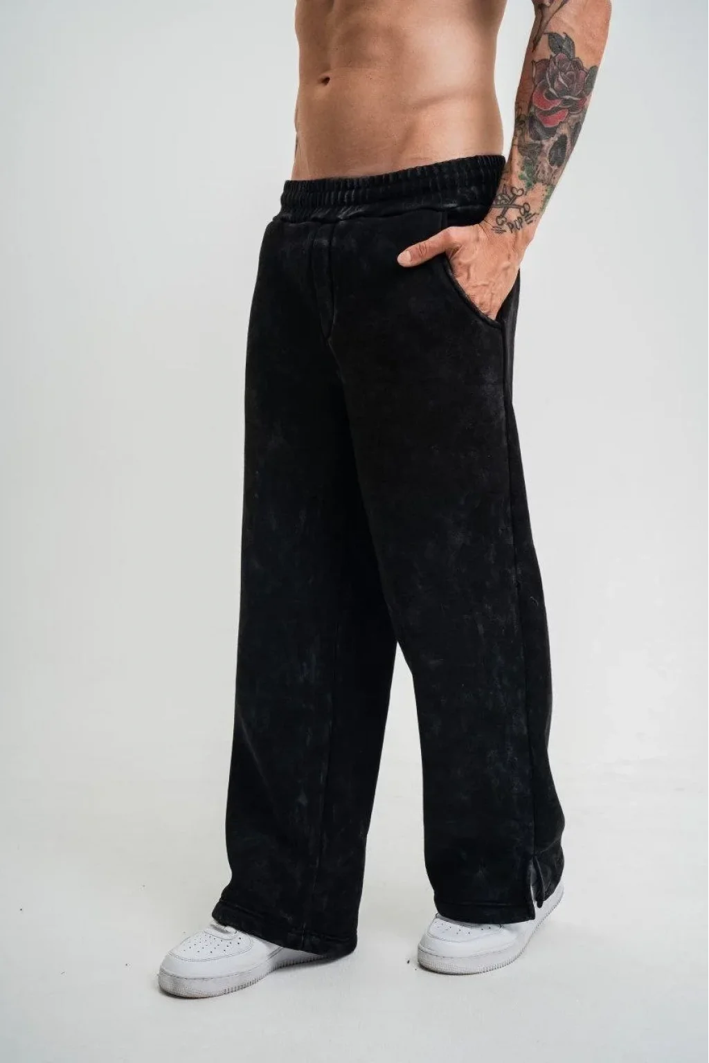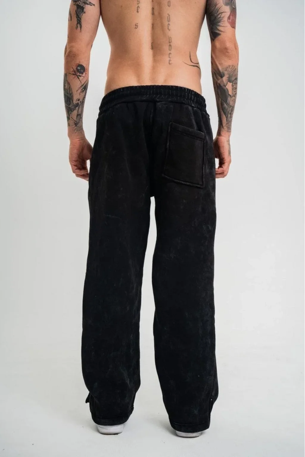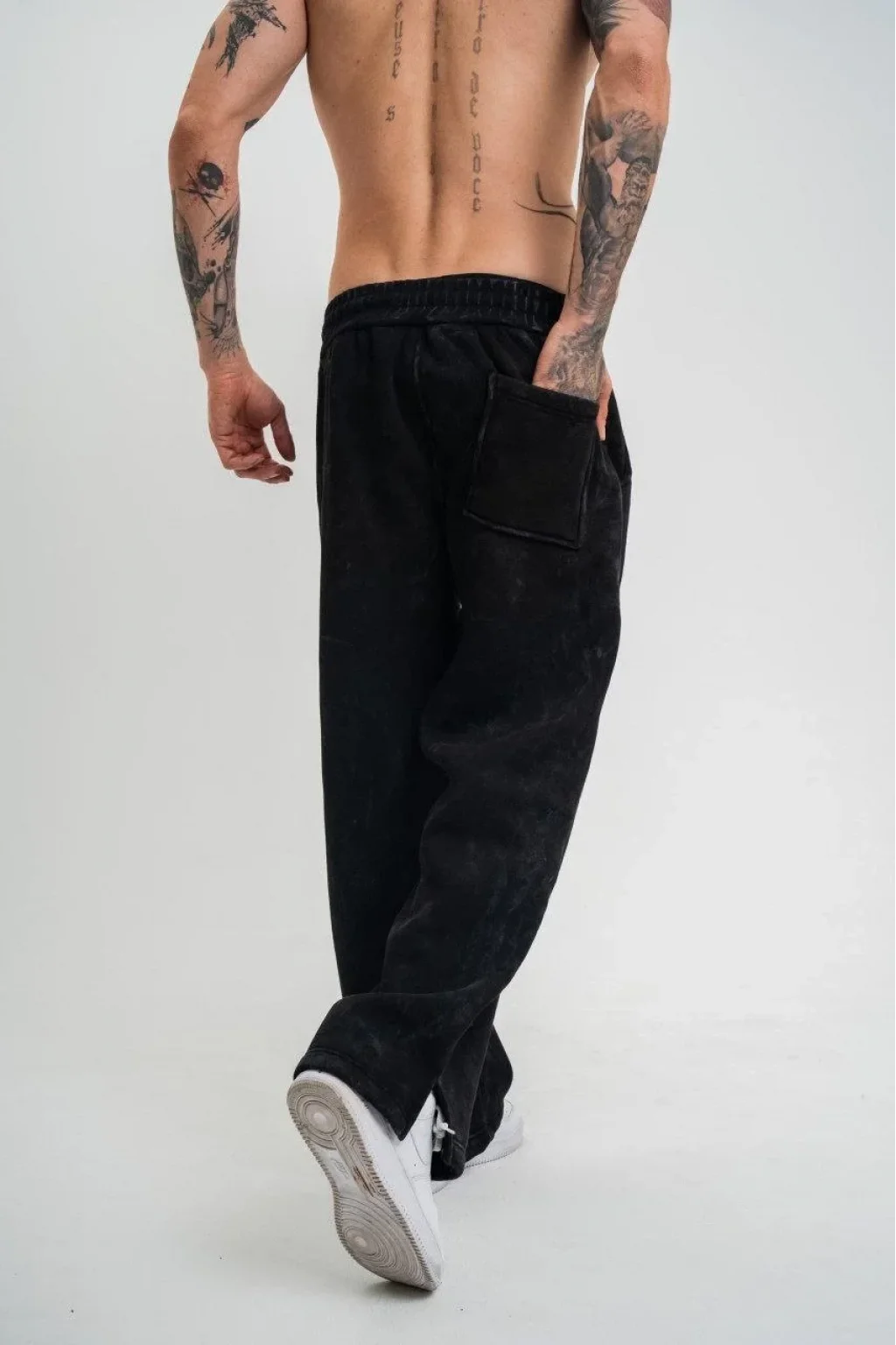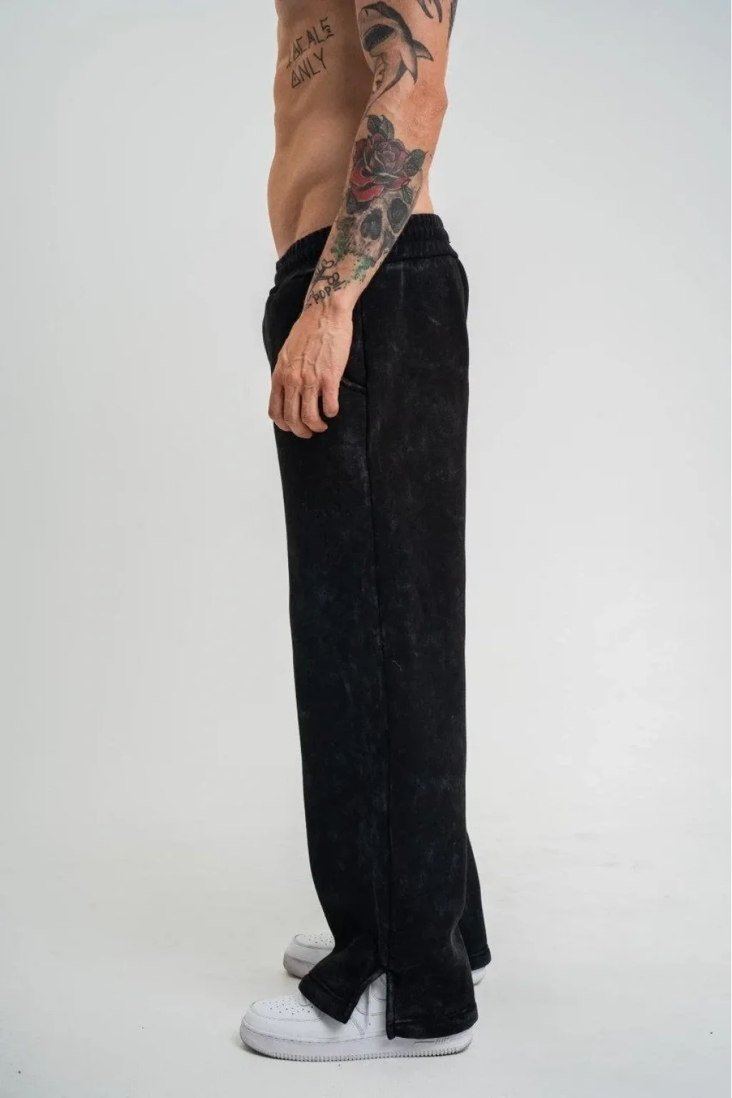 Yırtmaç Detaylı Boru Paça Baggy Eşofman Pantolon - Siyah