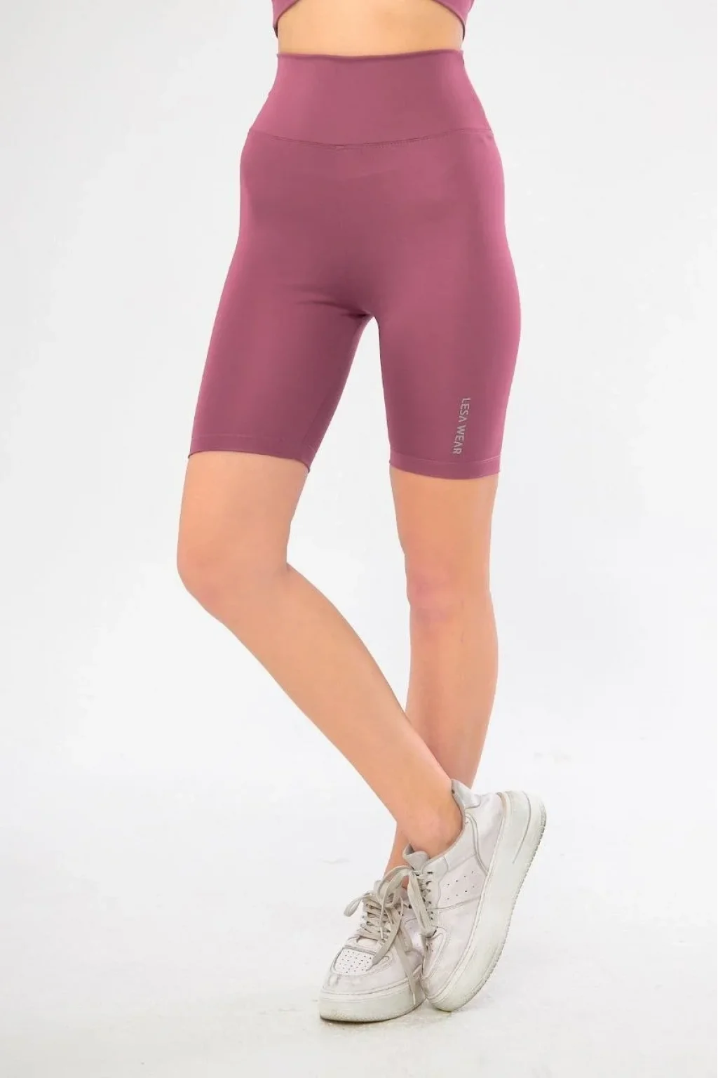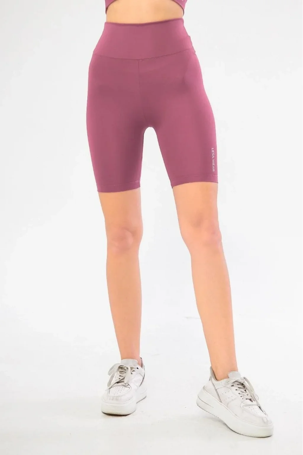 Yüksek Bel Biker Sporcu Şort - Gül Kurusu