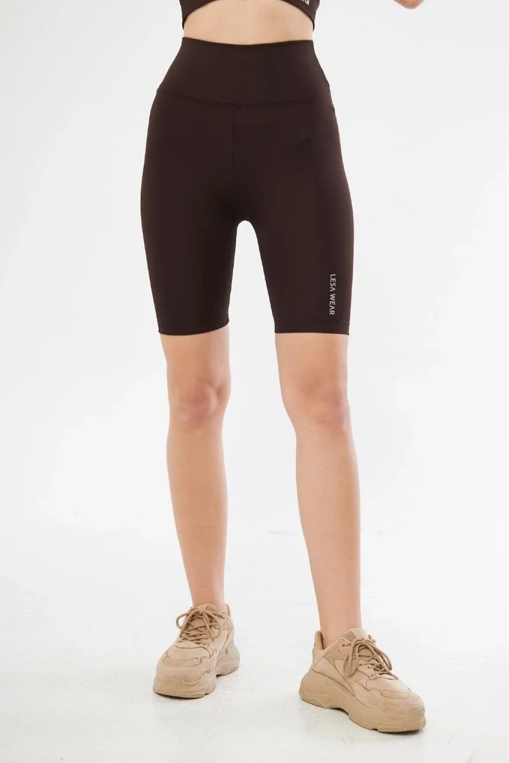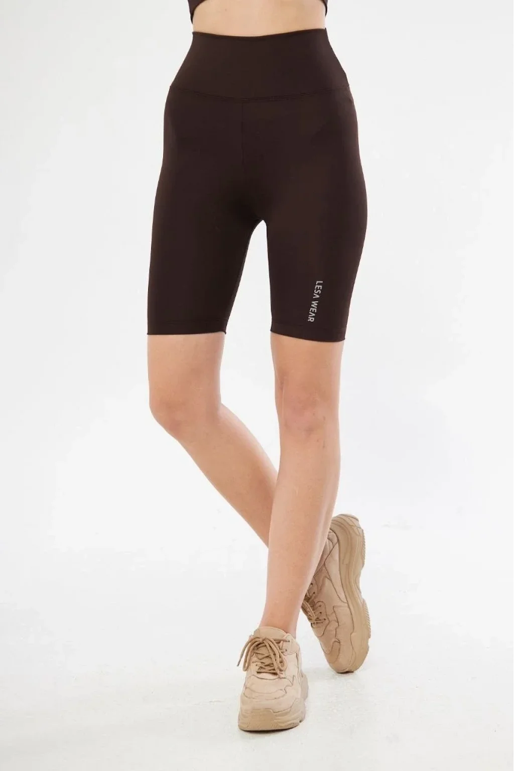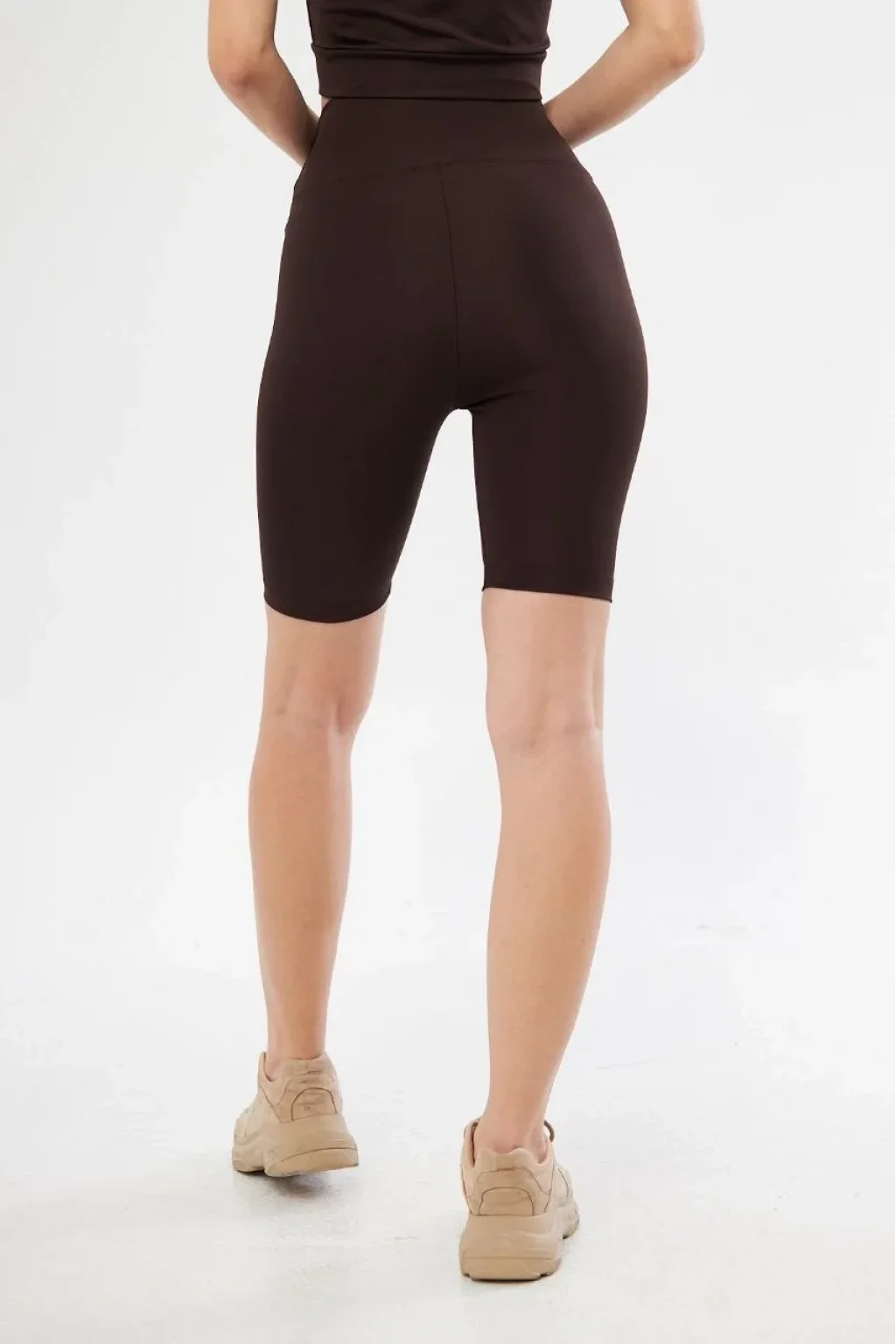 Yüksek Bel Biker Sporcu Şort - Kahve