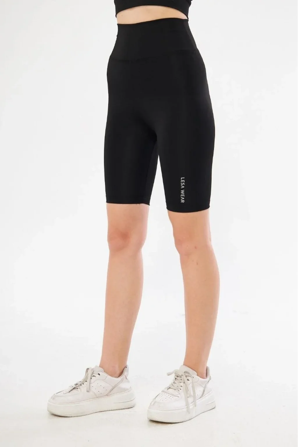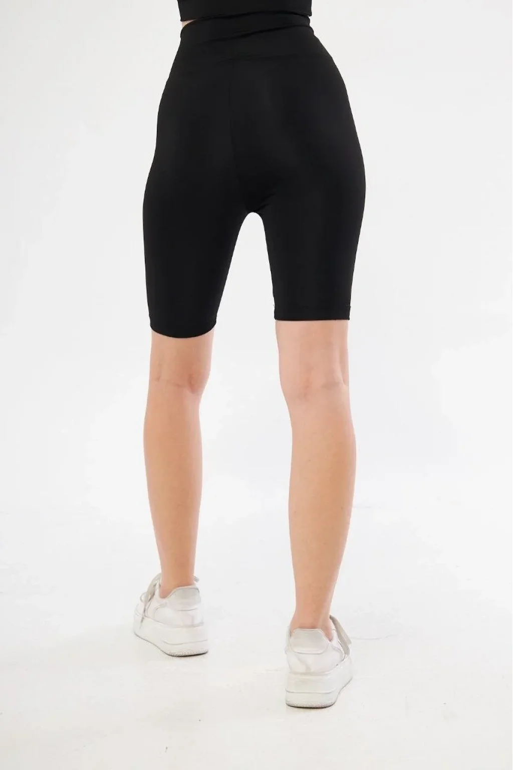 Yüksek Bel Biker Sporcu Şort - Siyah