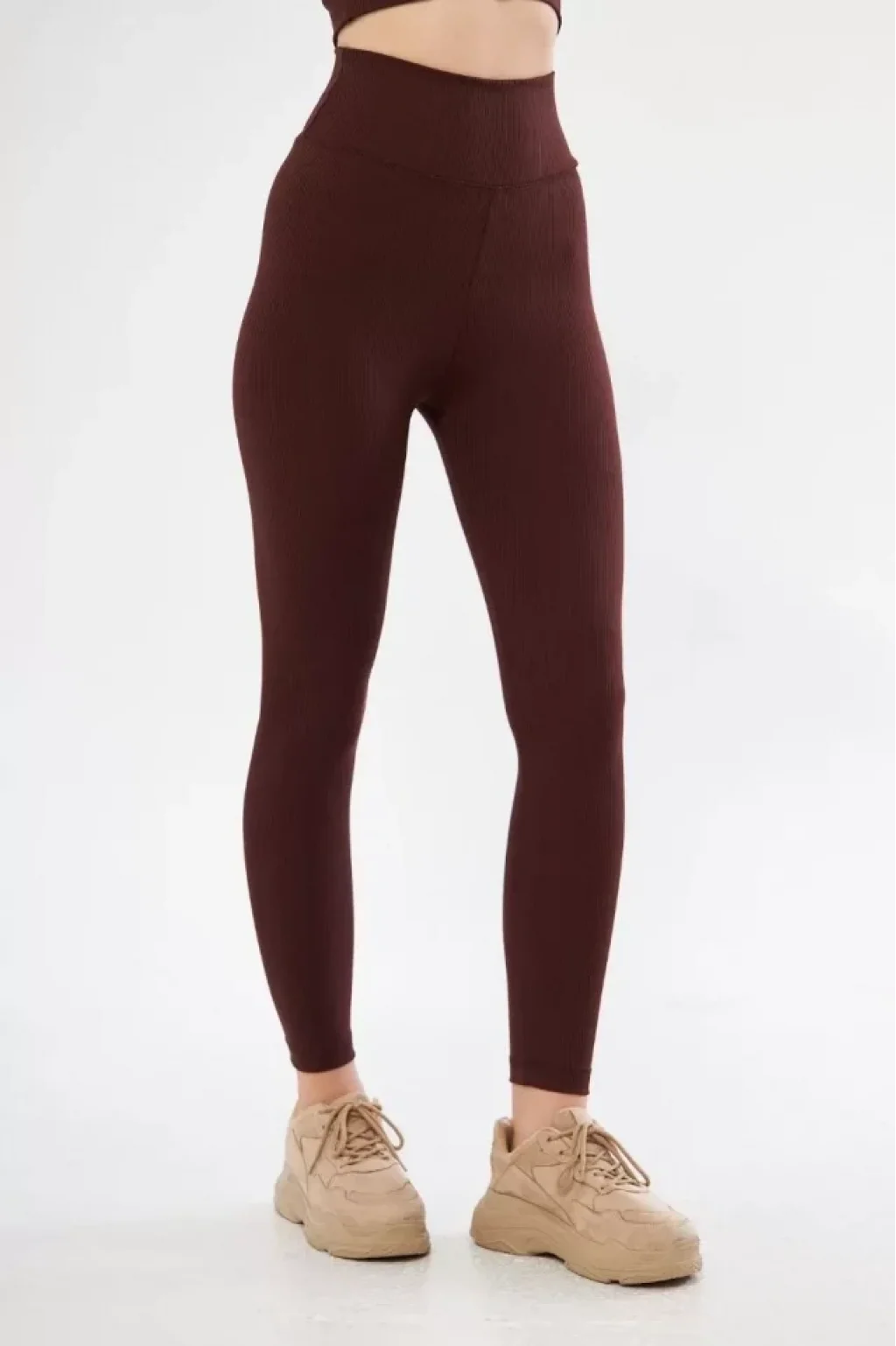 Yüksek Bel Fitilli Tayt - Bordo