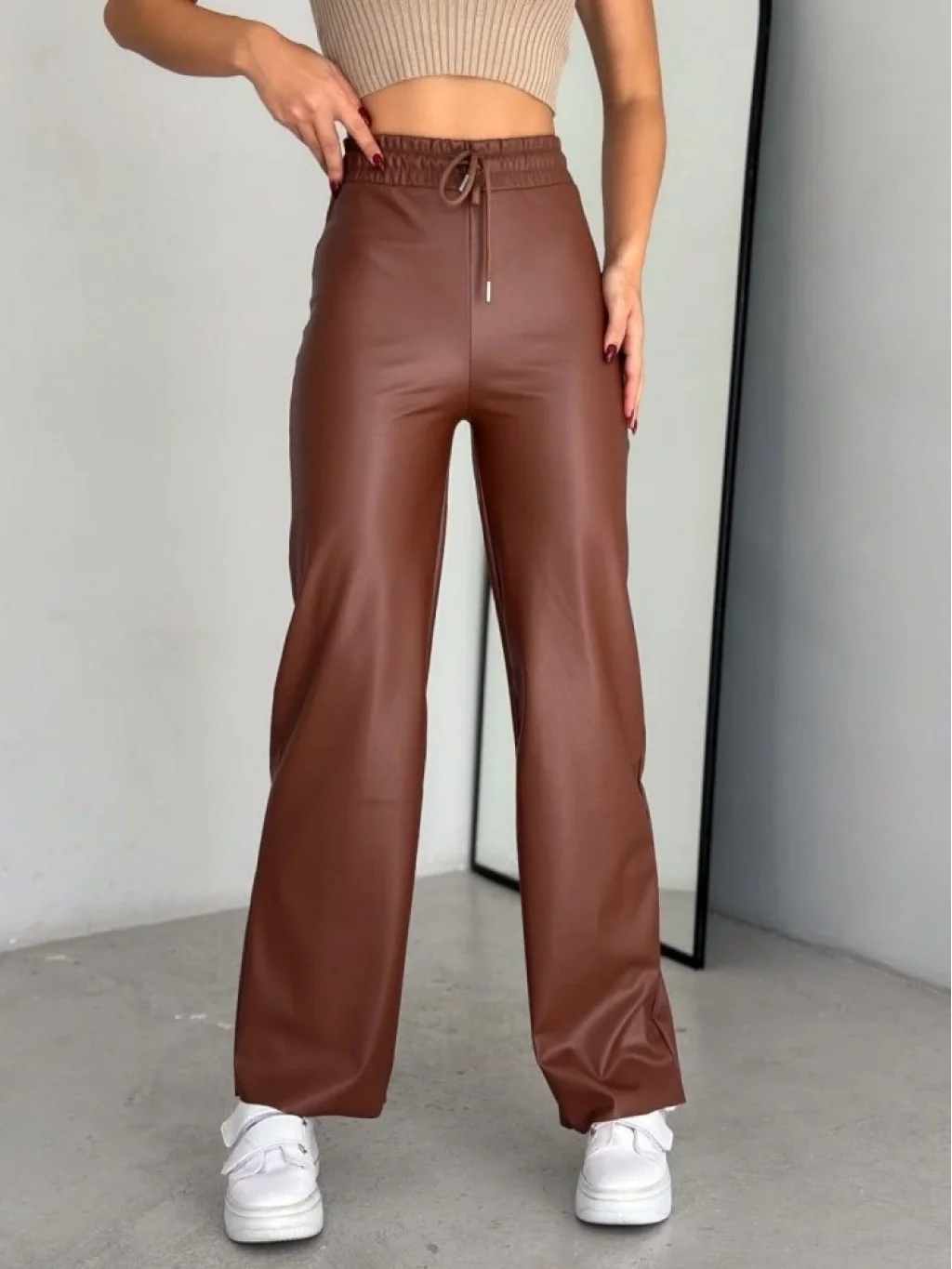 Yüksek Bel Geniş Paça Içi şardonlu Deri Pantolon.