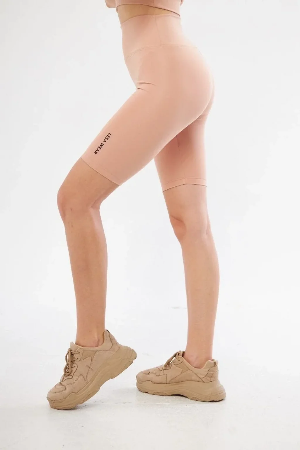 Yüksel Bel Dalgıç Biker Şort - Bej