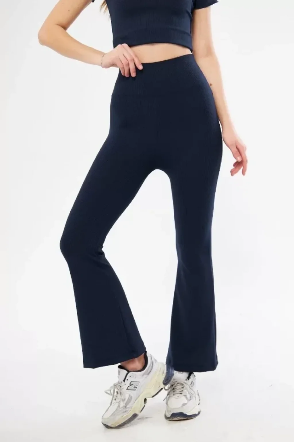 Yüksel Bel Fitilli İspanyol Paça Tayt - Lacivert